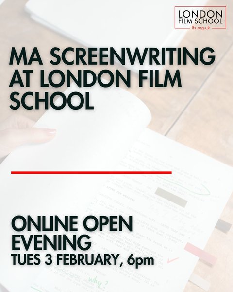 London Film School is holding an MA Screenwriting Online Open Evening on Tuesday 3rd February 2026, at 6pm GMT.