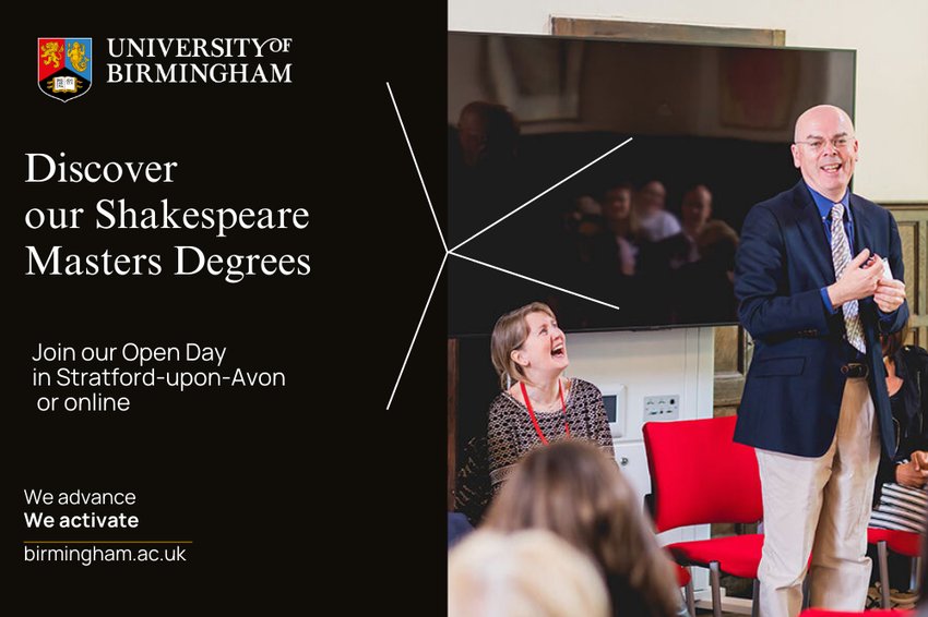 The University of Birmingham is holding a Shakespeare Institute Open Day on Monday 19th May 2025, from 10am–4.15pm BST.